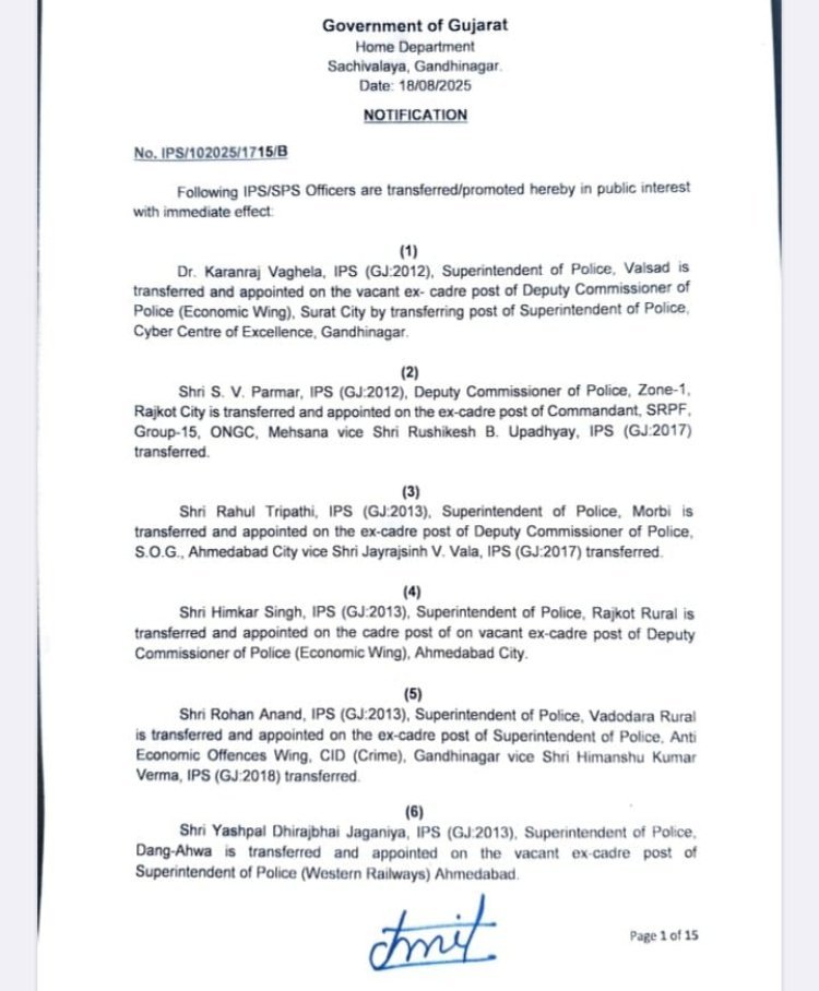 Gujarat IPS Officer Transfer : ગુજરાત સરકારે આખરે 105 IPS અને સ્ટેટ પોલીસ સર્વિસના ઓફિસર્સની ટ્રાન્સફર કરી, ટ્રાન્સફર લિસ્ટમાં મોટાભાગના ગુજ્જુ, આ રહ્યું લિસ્ટ