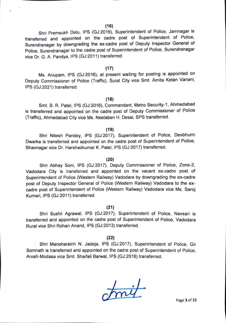 સ્ટેટ પોલીસ કેડરમાંથી પ્રમોશન પણ આપ્યું, અમદાવાદથી IPS સફીન હસન, બળદેવ દેસાઈ, ગીર સોમનાથના એસપી જાડેજા ઉપરાન્ત MT સેક્શનના મનીષ સીંગ પણ બદલાયા
